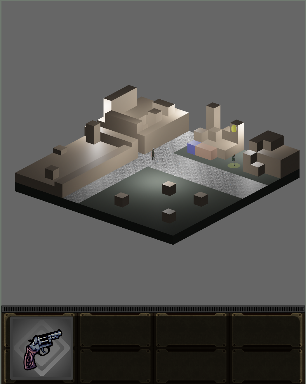 Cue lots of feverish coding between September and now for adding the capacity to draw a tiny little office and place a character in it to walk about; I was lucky in this regard that I was building Gentle People on top of a previous game effort I’d called ‘swat’ because the look of it was inspired by what I could remember of SWAT 2. That had a little person who walked about, but only between individual square dioramas. I had to do lots of wrangling to extend it to draw arbitrary-sized offices and then on top of that add a concept of ‘rooms’, because I was imagining that to perform different music industry tasks you’d need to walk to the relevant department at the label (still not entirely convinced this won’t be tedious in practise, we will see.) swat had an existing map editor, which was handy, and rather than adapting it to edit maps of arbitrary shape I instead put in another layer of ‘meta-map’, and an editor for gluing together lots of diorama maps into a larger whole.